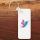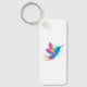 Ljusstark, iriserande, exotisk flygande hummingbird på vit bakgrund, målad med multifärgad, vattenfärg. Regnbågsmusfågel.