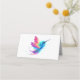 Ljusstark, iriserande, exotisk flygande hummingbird på vit bakgrund, målad med multifärgad, vattenfärg. Regnbågsmusfågel.