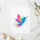 Ljusstark, iriserande, exotisk flygande hummingbird på vit bakgrund, målad med multifärgad, vattenfärg. Regnbågsmusfågel.
