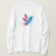 Ljusstark, iriserande, exotisk flygande hummingbird på vit bakgrund, målad med multifärgad, vattenfärg. Regnbågsmusfågel.