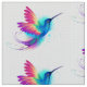 Ljusstark, iriserande, exotisk flygande hummingbird på vit bakgrund, målad med multifärgad, vattenfärg. Regnbågsmusfågel.