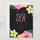 Den exotiska akvarell tropiska blomhochzeiten Spara datumet har en fängslande design med livfulla tropiska blommor i akvarell, perfekt för att tillkännage din speciella dag med en touch av exotisk skönhet och tropisk elegans.