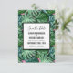 Bröllop spara datum-kort med en sommarkänsla.. Bakgrunden är mönster av exotiska tropiska filodendron-löv i grönt. Handmålad digital bild. Ett tips om rosa i bakgrunden.