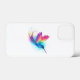 Ljus, iriserande, exotisk flygande kolibri på vit bakgrund, målad med flerfärgad, akvarellfärg. Regnbågskolibri.