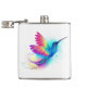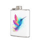 Ljus, iriserande, exotisk flygande kolibri på vit bakgrund, målad med flerfärgad, akvarellfärg. Regnbågskolibri.