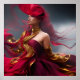 Exotisk rödhårig kvinna flödande rött Guld Abstrak Poster