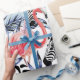 Exotisk rosa flamingo, zebra på bakgrundsblått sommarblått tropik handflatan löv. Vattenfärgen blommigt tapet. Jungle Safari Hawaii. Sömlös mönster. naturmålningsmönster i rand mode,vattenfärg,tropik,zebra,djur,flamingo,sömlös,sommar,djungel,fågel,blommigt,handflatan,rand,skriva,safari,löv,bakgrund,tapet,vit,vintage,retro,illustration