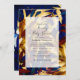 Inbjudan till bröllops- eller baby shower med en lyxig djungelmönster i nyanser av blå, burgunder och guld.