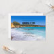 En bröllopsinbjudan med ett fotografi som visar en strand på den grekiska ön Kreta. En vacker tropisk blå strand med skummande vågor. Underbart avskilt resmål.