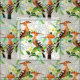 Mönster för fåglar | med exotiska fåglar, tropiska löv och vit blommar på en snörebakgrund. © och ® Bigstock® - all reserverad rättigheter.