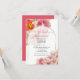 Detaljer vigselinbjudan - Modern text passar bra inuti denna vackra genomskinliga vita guldkantram som visar de underliggande fantasifulla ljusa exotiska korallrosa pionblommor med guldkanter - originalillustration © av WhimsicalArtwork™.