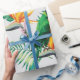 Exotisk färgad papegoja och orange blommor mönster med grönt löv. papper mall för radbyte för anpassade