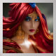 Exotisk rödhårig juvel-kvinna som flyter röd Guld blå Abstrakt Stunning Fina Glamorus huvud juveler röd läppar A Stunning guld Glamorösa kvinnor poster Fina röda läppar röda hårjewels choker necklace porträtt