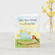 This spring-themed birthday card features a daffodil-inspired birthday cake, the flower of March, with a robin perched on a wooden cake stand, creating a cheerful and meaningful design for a expecting mom's birthday.
