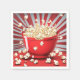 Popcorn exploderar ur en röd skål med röd och vit stjärnstrimlad bakgrund
