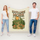 Be inspired to explore more of the great outdoors with this reversible retro inspired soft and cozy blanket featuring a mountain scene and bold mossy wood look text. A mushroom and pine lined hiking trail meanders through the valley as the golden sun glows between snowcapped mountains. Make for dreamers, hikers, explorers and anyone who feels most alive when in nature. This unique cream fleece throw blanket is the perfect way to bring the outdoors into your space. | The matching throw pillow is available in my store.