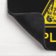 Fara - sprängmedel - svart mousepad med explosiv varning för gul bokstäver undertecknar.