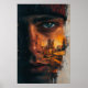 Upplev det råa kant med denna slående exponering för dubbla porträtt. En ung man blickar direkt framåt, sitt uttryck intensivt och fokuserat. En grym stadskylin är på sin kind, framhävs av en pulserande gult/orange som strålar ut från byggnad. Den övergripande utformningen har en tydlig grungande känsla, som fångar upp ofiltrerad energi och struktur på gatorna. Perfekt för dem som uppskattar edgy contemporary, djärv stadsetik och porträtt med stor, direkt inverkan.