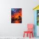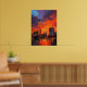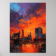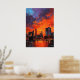 Vibrant expressionist skyline artwork inspired by New York City featuring the famous Brooklyn Bridge and Manhattan skyline glowing at sunset. Bold textured brush strokes and intense colors create a dramatic urban cityscape painting perfect for lovers of NYC and modern expressionist architecture art.