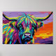 Immerse your space in vibrant energy with this stunning neo-expressionist Highland cow wall art. Featuring a captivating palette of electric teal, magenta, and sunny yellow, the thick palette knife scrapes create a dynamic and modern interpretation of this beloved animal. This colorful cow print is perfect for adding a bold and lively statement to any contemporary home or office.