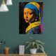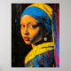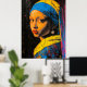 Expressionistisk flicka med pärlörhänge - djärv ko poster