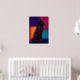 En dominerande svart vargporträtt skapad med rå uttrycksfull linjearbeten och mättade färgfältblock. Den stilla ställningen, symboliska detaljerna och glödande färgpaletten frammanar instinkt, tystnad och styrka, och förvandlar detta abstrakta djurkonstverk till en djärv fokuspunkt för samtida utrymmen.