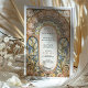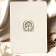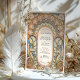Den här andningsbjudande inbjudan till Art nouveau-bröllopet innehåller en komplex blommigt som inspirerats av vintagens dekorativa konst. Fintvätt av vita blommar, mjuka blommigtar och botaniska detaljer som accentueras med guld ramar texten i en elegant, symmetrisk layout som skapar ett sofistikerat och tidlöst utseende. Den varma gräddbakgrunden förstärker den förfinade estetiken, medan baksidan visar en monokulär symbol som är inlindad i rörliga blommigtar. Perfekt för vår bröllop, vintage firande, eller par som högtidlighåller klassisk Art nouveau elegans. Anpassa den här inbjudan för att göra ditt tillkännagivande från bröllop helt oförglömligt.