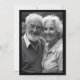 This exquisite black and white design stands out with its timeless elegance, offering a wedding or anniversary invitation that captures the essence of the celebration with classic sophistication. The combination of pure white and deep black creates a striking contrast, while the images themselves stand out with simple and elegant beauty. The invitation features a carefully considered layout: on the front, a special photo of the couple taken at the start of their journey together, reflecting their love in its purest form. On the back, a more recent image, showing how that bond has evolved, highlighting growth, the passage of time, and deep connection.