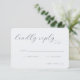 This elegant wedding RSVP card features a sophisticated and minimalist design with an understated color palette, primarily using soft grays. The typography is refined and cursive, adding a touch of timeless charm to the overall look. Perfect for couples aiming for a classic yet modern aesthetic, this card exudes a sense of grace and simplicity, making it ideal for formal or semi-formal weddings. With customizable text areas, you can personalize it effortlessly while maintaining its polished appearance.