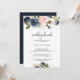 Den här utsökta inbjudan från blommigt bröllop brunch är perfekt för en tropisk familj och vänner samlas i bröllop brunch. Utformningen skildrar handritade , mörk blått och marina vitmiblommor, inspirerande elegans, klass och naturskönhet.