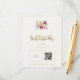 The design includes a practical back with a dedicated space for your QR code, allowing guests to easily access wedding details such as directions, accommodation options, schedule information, or any updates with a simple scan. Additionally, it features an extra text area so you can add important travel guidance, venue notes, or website information, keeping everything organized on a single card.