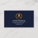 På andra sidan i ett blått omslag är logotypen i guld överst, följt av ditt prestigefyllda namn, kontaktuppgifter och en slogan för att sprida information om dina tjänster.