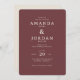 This elegant wedding invitation features a sophisticated maroon background with clean, classic typography that exudes timeless charm. The design is simple yet refined, focusing on the essential details in an understated manner. Perfect for couples who appreciate a modern and minimalist aesthetic, this invitation sets a warm and inviting tone for their special day. With ample space for personalization, it seamlessly blends functionality with style, making it ideal for those looking to create a memorable first impression at their celebration.