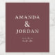 This elegant wine label design exudes a sophisticated and timeless charm, perfect for commemorating special occasions like weddings. The clean typography is simple yet refined, complementing the rich maroon background that adds warmth and depth to the overall aesthetic. With its classic color palette and minimalist style, this label creates an inviting and romantic mood, making it ideal for celebrating love and unity on your big day. Customize with personal details to make it uniquely yours, ensuring every bottle becomes a cherished keepsake from your memorable event.