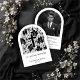 Exquisite Minimalist Elegant Black and White Botanical Climbing Arch-Shape Funeral Invitation Cards with Back Photo.