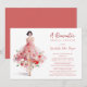 This design stands out for its sophisticated watercolor effect, bringing an artistic, light, and ethereal feel to the entire composition. The illustration features a full-body woman in an elegant model pose, with dark hair and a delicate, refined presence. She wears a pink tulle dress whose flowers seem to softly scatter in watercolor, in shades of pink, red, and white, with green leaves adding freshness and balance. The front background is white, allowing every brushstroke to be appreciated clearly, highlighting the delicacy of the tulle and the grace of the female figure. The back of the invitation is pink, providing warmth and contrast while elegantly complementing the design without interfering with the artistic details of the illustration. Every detail conveys exquisiteness, femininity, and a romantic aura, making the invitation truly artistic and refined.