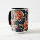 Mugg har en avancerad återinspirerad design med förfinat orange ro som utstrålar tidlös elegans och charm. Den intrikata blommigtens arrangemang skapar en fängslande och harmonisk estetisk grönt, omgiven av vackra löv och vackra blommor. Den mörk blått bakgrunden förstärker det lyxiga färg, som ger en slående kontrast som gör varje steg sofistikerad. Perfekt för att njuta av dina favoritdrycker i hetten kombinerar mugg funktioner med vintage-inspirerad skönhet. Varaktig och snyggt, det är ett vackert tillskott till ditt kök eller en tänkvärd gåva till kaffe- eller teentusiasten.