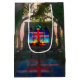 En gammal stenkyrka står i ruiner mitt i gräset och blommor från en solig högtrappa, men nedfläckaden glasfönster fortfarande färg i morse med ett rött kor mot en ljusstark soluppgång. De gamla stenbågarna är brutna, men det blommande träd ram är fönsterbräcket.
