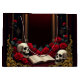 Externa kärlek i mörkrets skuggor, i Gothic stil. Fokuspunkten är en stor gotisk arkway som dekoreras med känsliga detaljer om guld och skuggas mot en djup röd bakgrund. De två eleganterna som flankerar arborden ger en underlig tryckning till utformningen och framhäver den opulenta designen. Det hjärta som försiktigt flyter från stigen ritar öga och är inramat av en droppande blodeffekt.