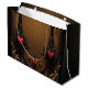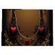 Externa kärlek i skuggan av det gotiska mörkret. Ornaten ram, inspirerad av den gotiska arkitekturen, består av två stora svarta kolumner med delikata accenter från guld. Dessa kolumner ram är en stor, bågformig öppning som skiner mot en varm brun bakgrund, vilket ger perfektens kontrast till mörk inslag. Fintliga röda hjärtan är delvis inlindade i bra.