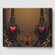Externa kärlek i skuggan av det gotiska mörkret. Ornaten ram, inspirerad av den gotiska arkitekturen, består av två stora svarta kolumner med delikata accenter från guld. Dessa kolumner ram är en stor, bågformig öppning som skiner mot en varm brun bakgrund, vilket ger perfektens kontrast till mörk inslag. Fintliga röda hjärtan är delvis inlindade i bra.