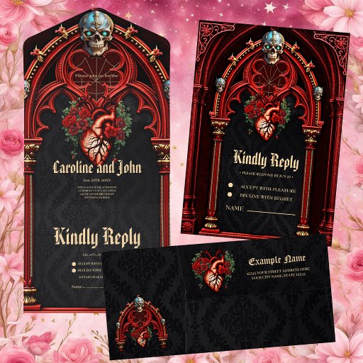 Externa kärlek i skuggan av ro. Utformningen har en fantastisk gotisk arkway som lyser i en djup, romantisk röd nyans. Tre stiliserade döskallar placeras på bågens sidor, var och en med ljusblått ögon, som symboliserar eviga förbindelser och evigt kärlek. Ro befinner sig i fullt blomning och utstrålar en varm energikälla. Hjärtat beskrivs underbart i detalj med synliga vener och artärer. Utformningen är inte bara ett uttryck för kärlek skönhet, utan också för styrkan och varaktigheten i ett förhållande.