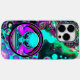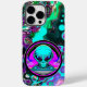 Neon psychedelic-konst som skildrar en utomjording och flygsåser. Generativ innehåll.