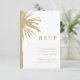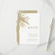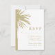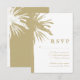 Extraordinära svarskort för OSA på strand. Ge är dina gäster ett sätt att svara om de kommer till ditt elegant-badbröllop. Den här utformningen går hand i hand med liknande bröllopsinbjudningar. Anpassade och papper kvalitet. Tropiskt tema för sommaren eller destinationen giftermål. Utformning av silhuette från Beige och färg handflatan träd. Du kan ändra paletten färg. lodräts layout.