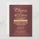 Inbjudan familj och vänner till en elegant-årsdag firande med anpassningsbar-burgundi och guld-inbjudningar. Alla formuleringar i den här mallen (inklusive "Cheers to 40 Years") har upprättats för en fyraårsjubileum för bröllop, men är enkla att anpassa för varje år eller händelsetyp. Utformningen har en enkel modern gräns på mörkens röda gemener, kalligrafi av snyggtar och klassisk vintage art deco-typografi. Observera att guld är tryckt på färg, inte metallfolie. Lycklig-jubileet och jubiléet till paret på deras milstolpe firande!