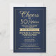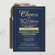 Inbjudan familj och vänner till en elegant-årsdag firande med inbjudningar från anpassningsbarnas marinavdelning och guld. Alla formuleringar i den här mallen (inklusive "Cheers to 50 Years") har upprättats för 50:e bröllop-årsdagen, men är enkla att anpassa för varje år eller händelsetyp. Utformningen har en enkel modern gräns på en mörk blått snyggt-bakgrund, kalligrafi av skript och klassisk vintage-konsthändelsetypografi. Observera att guld är tryckt på färg, inte metallfolie. Lycklig-jubileet och jubiléet till paret på deras milstolpe firande!