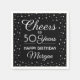 Lägg till en personlig för elegant till dekorationer för födelsedagsfest med dessa pappra blöjor för anpassningsbar. Anpassadet "Cheers to 50 Years" och silver faux glitter konetti-konfektyrer har en svart bakgrund. Den här mallen har skapats för 50-årsfirande, men är enkel att anpassa till ett annat år. Grattis på födelsedagen!