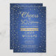Familjen inbjudan och vänner till en elegant-födelsedagsfirande med inbjudningar från anpassningsbar Blue och guld. Alla formuleringar i den här mallen (inklusive "Cheers to 50 Years") har skapats för en 50-årsdag, men är enkla att anpassa för varje år eller händelsetyp. Utformningen har moderna glitterikonfektuationer på en faux borstad metallbakgrund, snyggt-manusgrafi och klassisk vintage konsthugg-typografi. Observera att guld är tryckt på färg, inte metallfolie. Den könsneutrala utformningen är också lämplig för antingen en man eller en kvinna. Cheers och Grattis på födelsedagen!