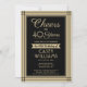 Familjen Inbjudan och vänner till en elegant-födelsedagsfirande med anpassningsbar svarta och guld-inbjudningar. Alla formuleringar i den här mallen (inklusive "Cheers to 40 Years") har skapats för en 40-årsdag, men är enkla att anpassa för alla år eller händelsetyper. Utformningen har en modern gräns, kalligrafi av snyggten och klassisk vintage-dekotypografi. Observera att guld är tryckt på färg, inte metallfolie. Den könsneutrala utformningen är också lämplig för antingen en man eller en kvinna. Cheers och Grattis på födelsedagen!