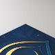 The deep blue background, accented with soft organic patterns and glowing dots, creates a calm, meditative atmosphere, while the rich gold details bring warmth and visual focus.